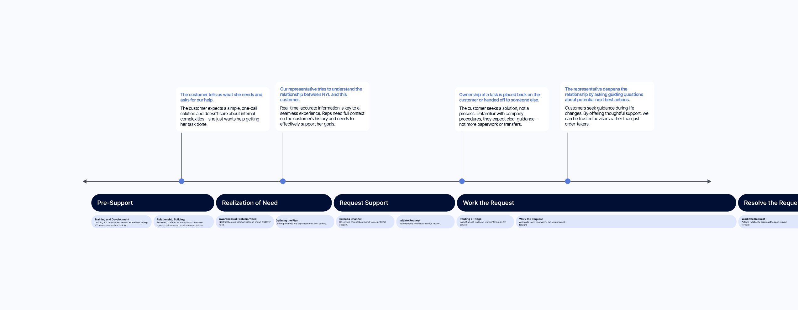 The Service Experience team owned post-issue servicing, claim resolution, and customer loyalty for a national insurance provider. While the team was responsible for some of the most critical agent to customer moments, the ecosystem supporting them had grown fragmented over time.