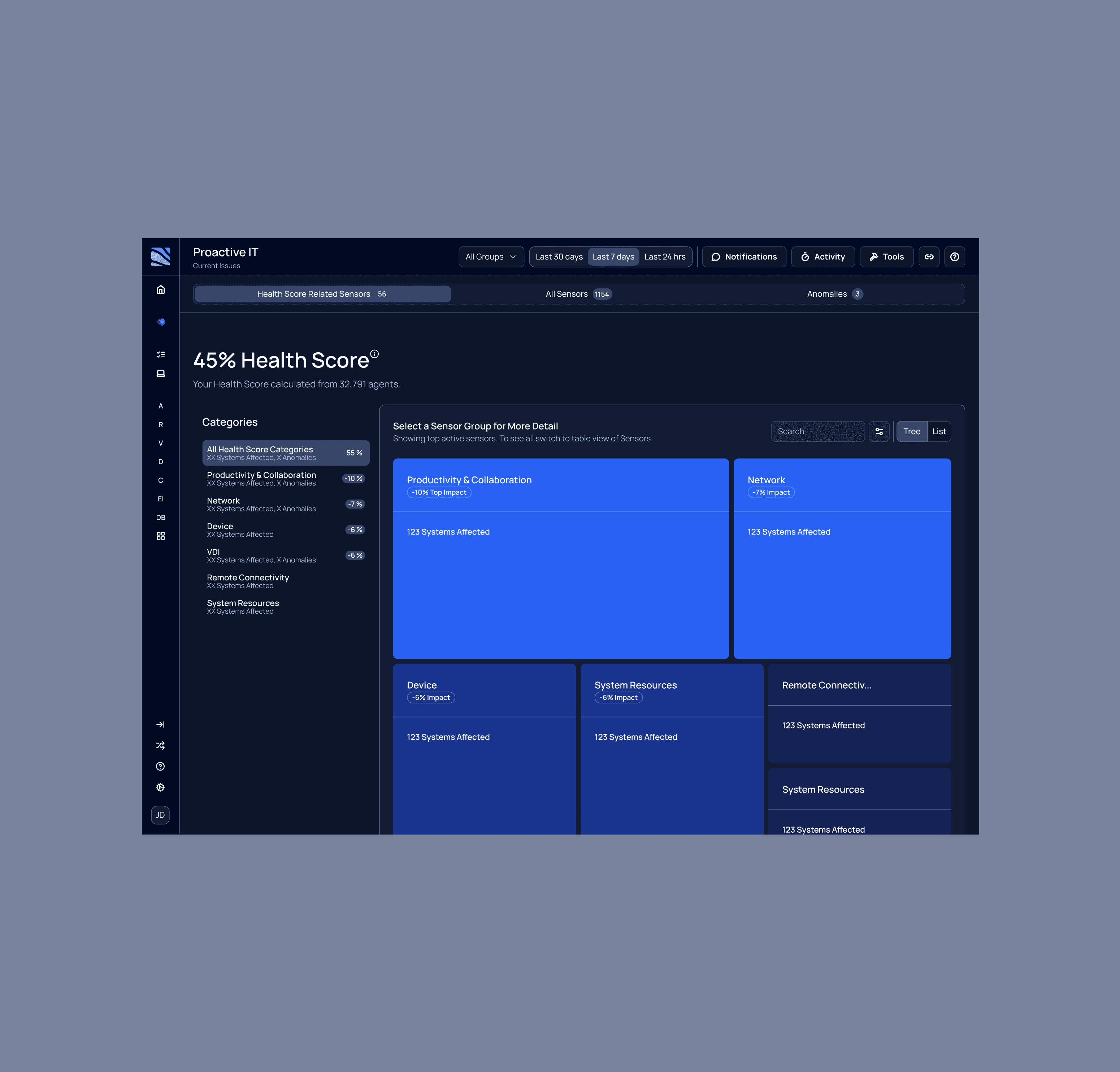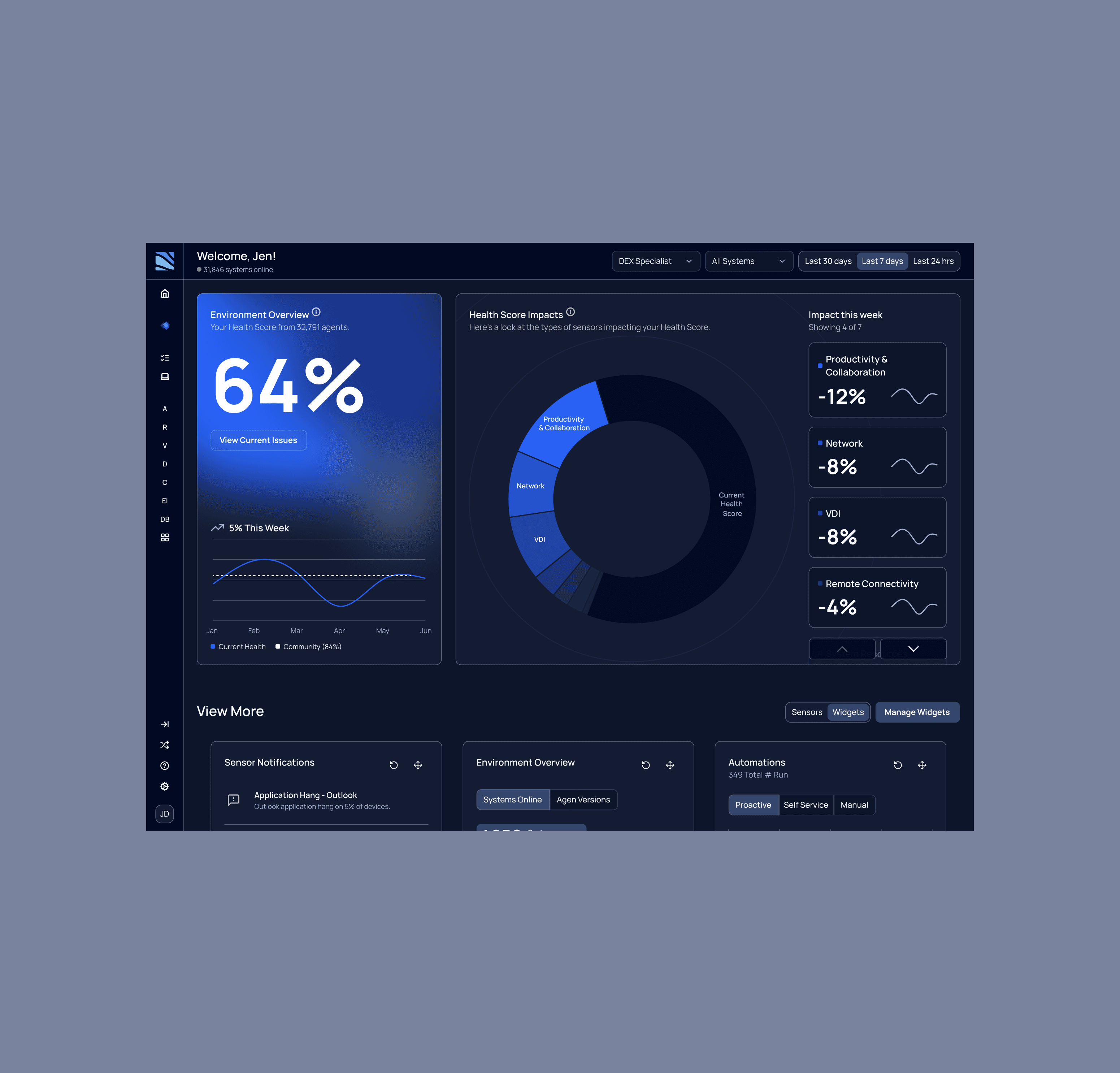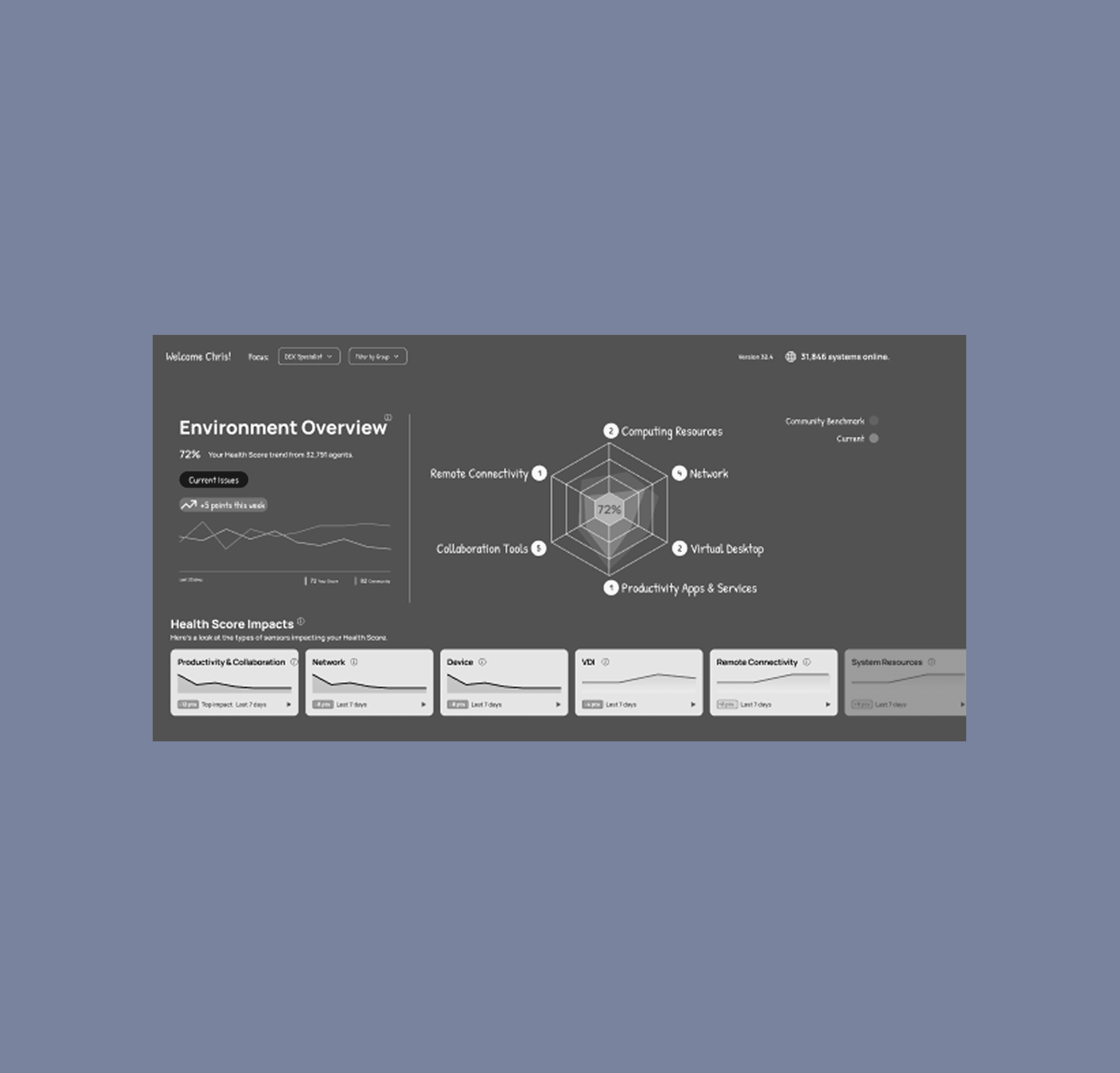 Much like a car dashboard, Lakeside used 1,000s of sensors to give IT teams deep visibility into their EUC environments and surface system signals such as high CPU usage, application crashes, and disk failures.
